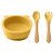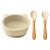 Baby Silicone Feeding Set with Wooden Handle Spoon, Fork & Suction Bowl