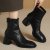Women’s Genuine Leather Pleated Ankle Boots – Square Toe, 6.5cm Heel